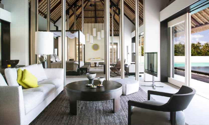 Atop traditional stilts over calm waters, the Lagoon Villa is the ideal setting for couples to enjoy moments alone. The voluminous interior spaces include a spacious living room, master bedroom with a grand bathroom including an indoor and outdoor shower, double vanities, a bathtub, separate toilet and double dressing room.