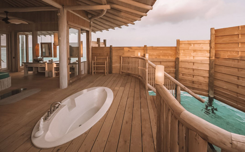 The lower floor offers a master bedroom with retractable roof, study, bathroom, pool and catamaran net, outdoor shower and daybed, walk-in minibar and a sleeping area for the children and an en-suite guest bedroom